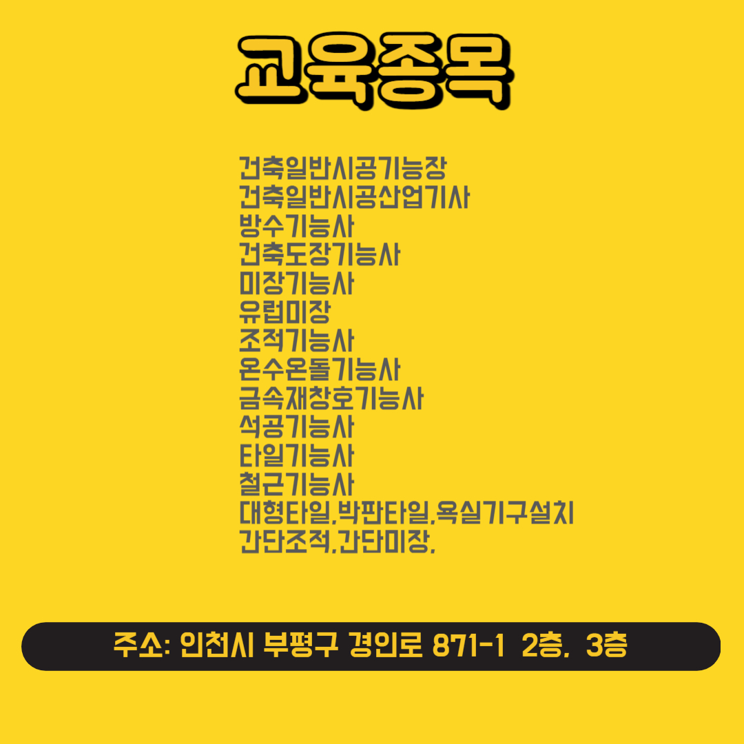 인천한중건설기술학원 교육종목