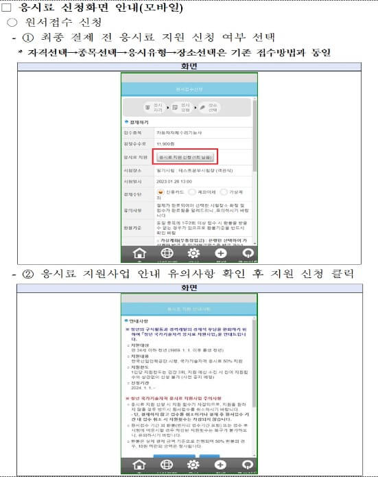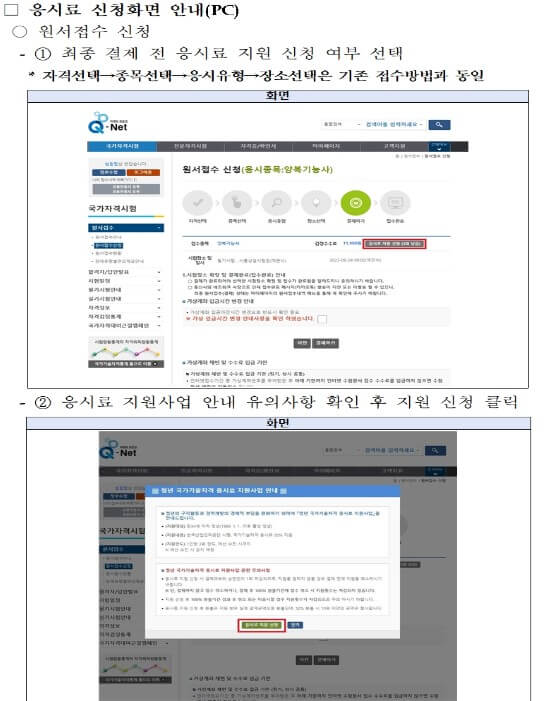 원서접수 시 응시료 지원받을 시험 선택 후 결제하시면 됩니다.