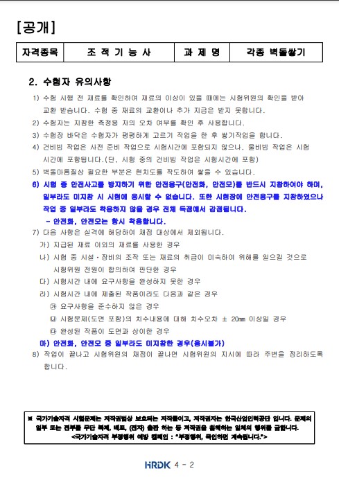 인천한중건설기술학원 조적기능사 실기시험 전체 동영상 유튜브 보러가기