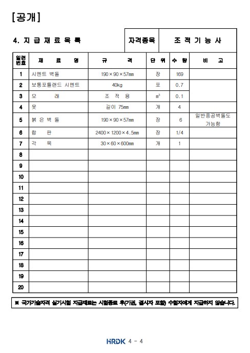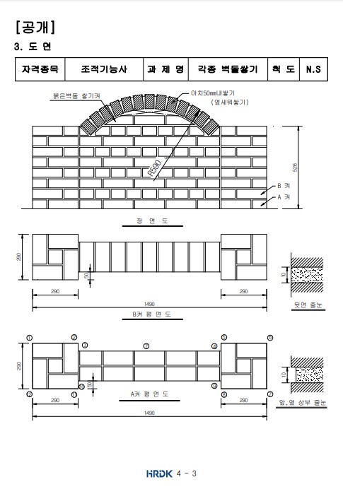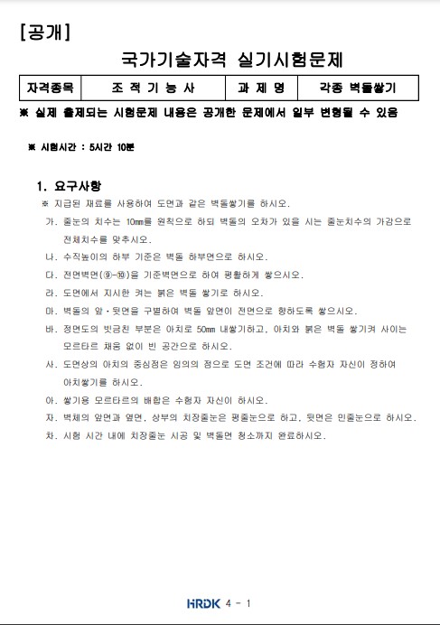 국가기술자격 조적기능사 자격증은 한국산업인력공단에서 시행하는 시험입니다. 공개문제를 살펴보도록 하겠습니다.